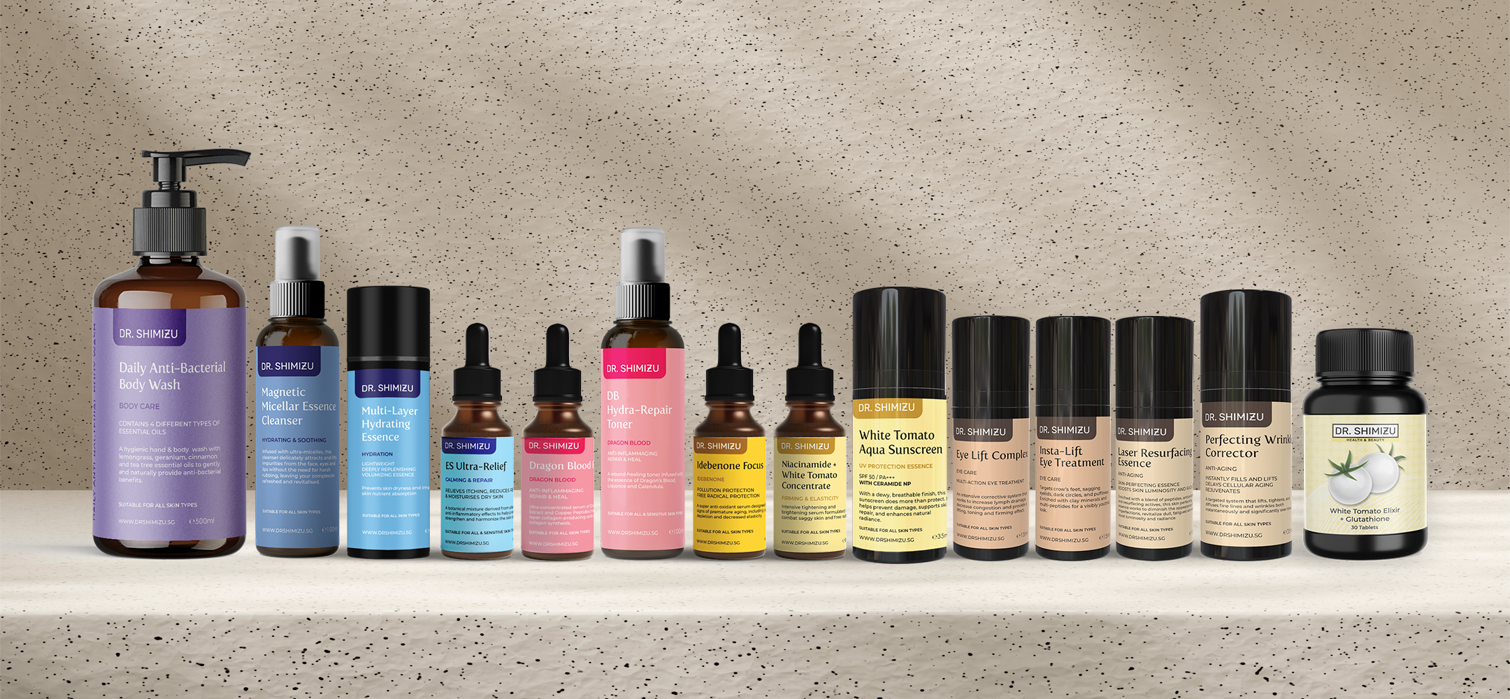 Dr. SHIMIZU is a premium skincare brand that is dedicated to providing effective solutions to various skin concerns. The brand is known for its scientific approach to skincare, as its products are formulated with a combination of cutting-edge technology and the latest advancements in dermatology research. Our ideology is rooted in the pursuit of healthy, glowing skin that reflects the inner vitality and self-confidence of every individual.